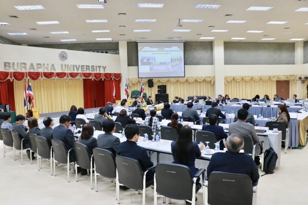 โดยมี รองศาสตราจารย์ ดร.สุมนต์ สกลไชย นายกสภามหาวิทยาลัย และรองศาสตราจารย์ ดร.วัชรินทร์ กาสลัก อธิการบดีมหาวิทยาลัยบูรพา พร้อมด้วยทีมคณะผู้บริหาร เข้าร่วมแลกเปลี่ยนความคิดเห็นเชิงกลยุทธ์ เพื่อกำหนดทิศทางการพัฒนาและขับเคลื่อนมหาวิทยาลัยให้ก้าวทันต่อความท้าทายใหม่ ๆ อย่างมีประสิทธิภาพ