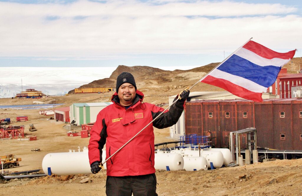 Assoc. Prof. Dr. Anukool: This polar exploration project is a collaboration between the Thai and Chinese governments and is under the royal initiative of Her Royal Highness Princess Maha Chakri Sirindhorn. In 2013, Her Royal Highness visited China and discussed this cooperation, which marked the beginning of the project. The foundation under Her Royal Highness’s patronage then continued to develop this project, leading to the sending of Thai scientists to explore the polar regions, either the Arctic or the Antarctic, depending on the opportunities available each year.