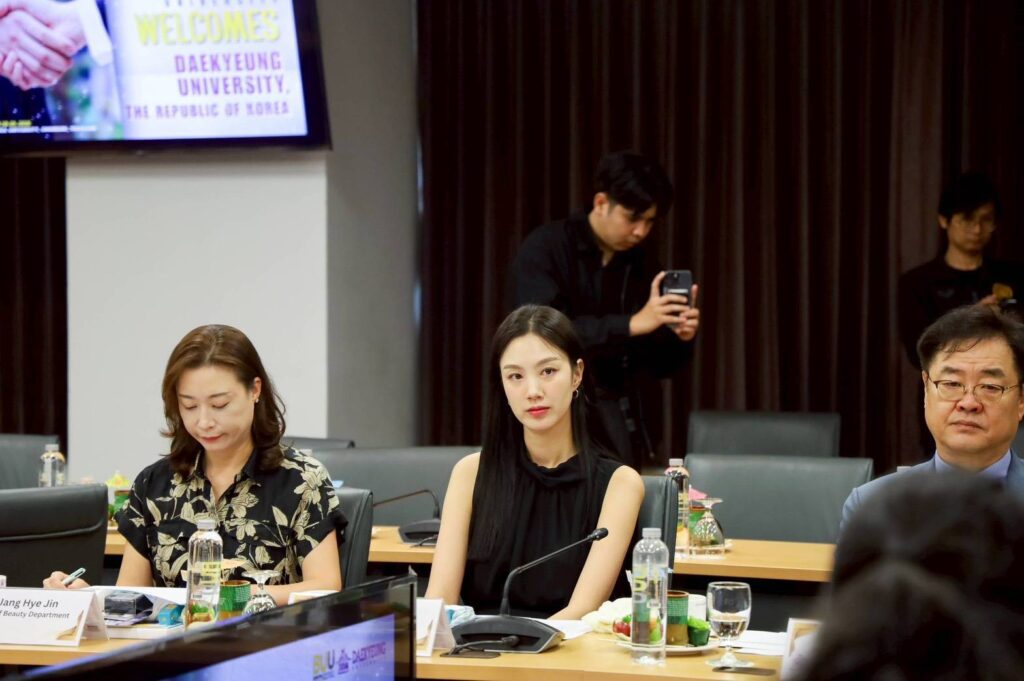 Dr. Yoo Jin Sun, Chairman of Daekyung University, and the administrative team held discussions to exchange ideas on academic cooperation between the two universities with the President, Associate Professor Dr. Somthawin Charitkuan, Vice President for Academic Affairs, and the Deans of the Faculty of Pharmaceutical Sciences, the Faculty of Business Administration, the Faculty of Music and Performing Arts, the Faculty of Sports Science, and the International College.