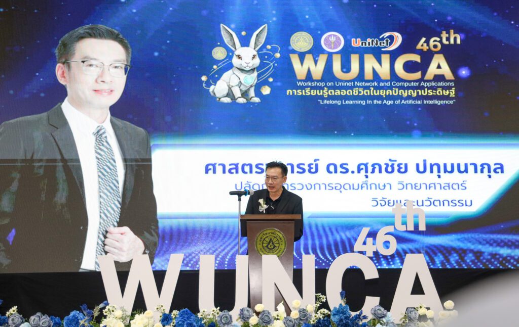 Home > Activity Pictures > ม.บูรพา วิทยาเขตจันทบุรี เป็นเจ้าภาพร่วมกับ สนง.บริหารเทคโนโลยีสารสนเทศเพื่อพัฒนาการศึกษา (Uninet) จัดงาน “การดำเนินกิจกรรมบนระบบเครือข่ายสารสนเทศเพื่อพัฒนาการศึกษา”ครั้งที่ 46 (46th WUNCA) ภายใต้แนวคิด “Lifelong Learning in the Age of Artificial Intelligence การเรียนรู้ตลอดชีวิตในยุคปัญญาประดิษฐ์”