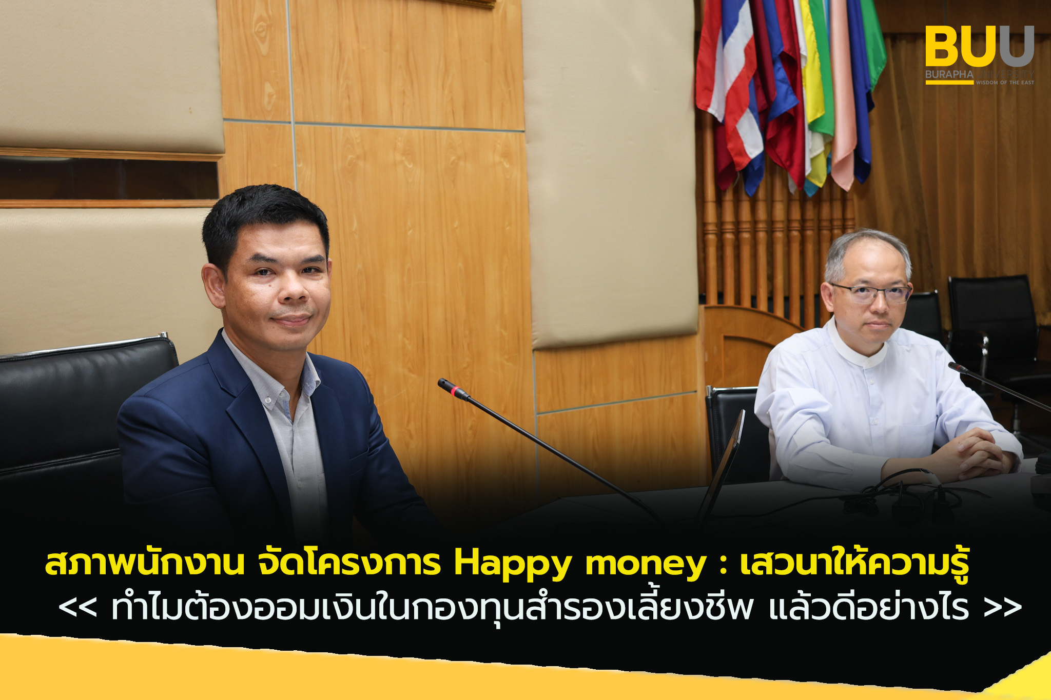 สภาพนักงาน มหาวิทยาลัยบูรพา จัดโครงการ Happy money : เสวนาให้ความรู้ เรื่อง ทำไมต้องออมเงินในกองทุนสำรองเลี้ยงชีพ แล้วดีอย่างไร?