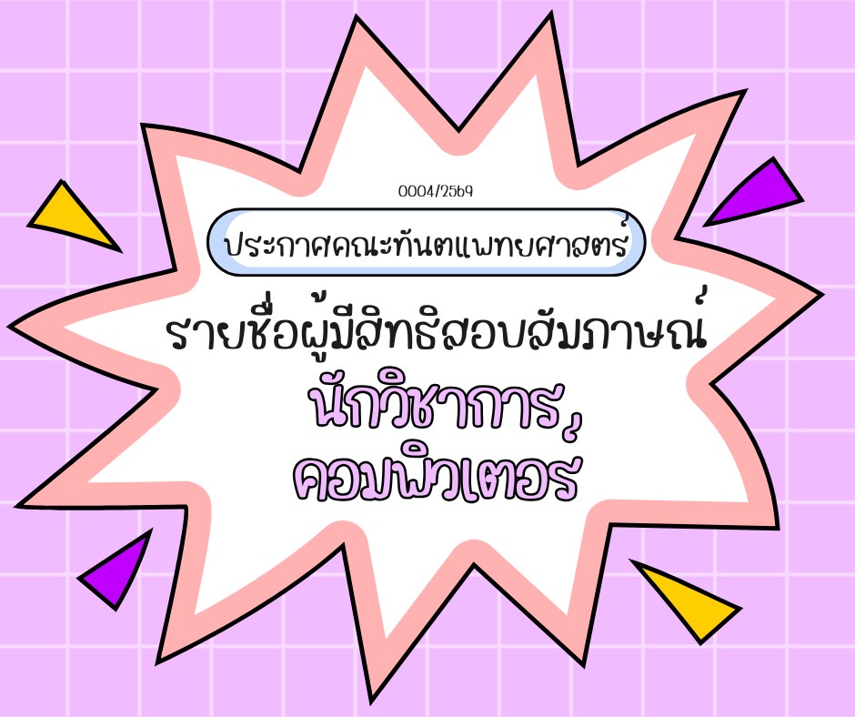 ประกาศรายชื่อผู้มีสิทธิ์เข้ารับการสัมภาษณ์ ตำแหน่งนักวิชาการคอมพิวเตอร์ 1 อัตรา คณะทันตแพทยศาสตร์