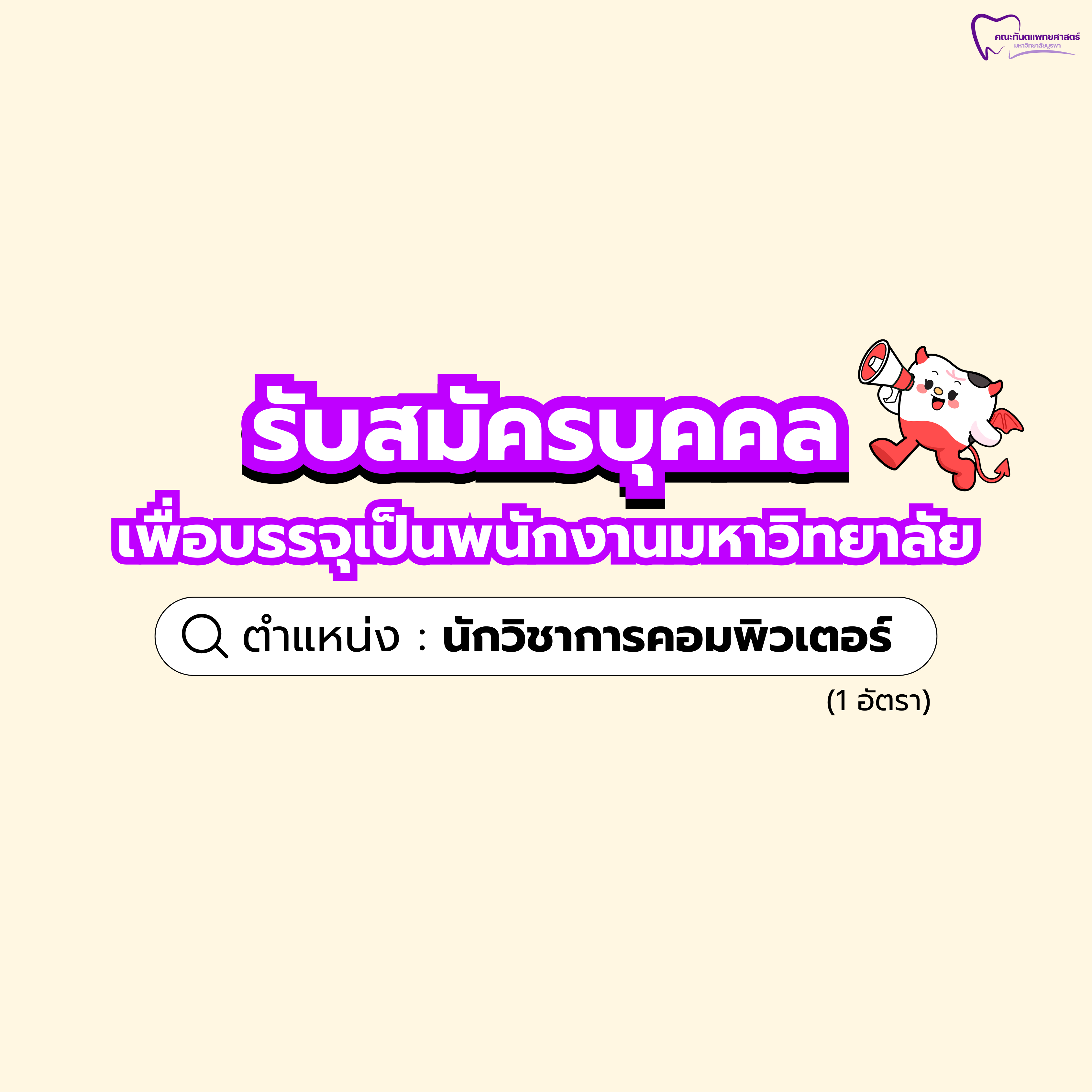 คณะทันตแพทยศาสตร์ มหาวิทยาลัยบูรพา รับสมัครคัดเลือกบุคคลเพื่อบรรจุและแต่งตั้งเป็นพนักงานมหาวิทยาลัย ตำแหน่ง นักวิชาการคอมพิวเตอร์
