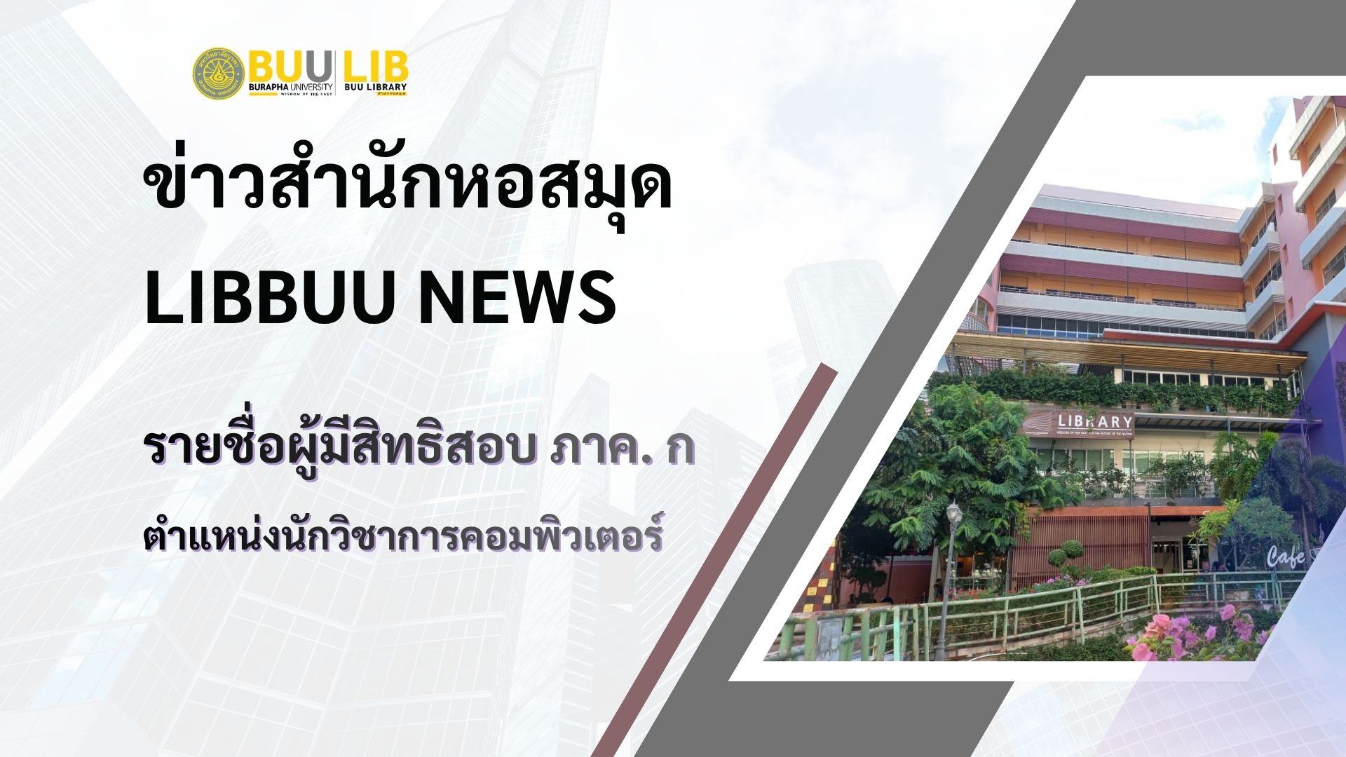 ประกาศรายชื่อผู้มีสิทธิ์เข้ารับการสอบ ภาค ข ตำแหน่งนักวิชาการคอมพิวเตอร์