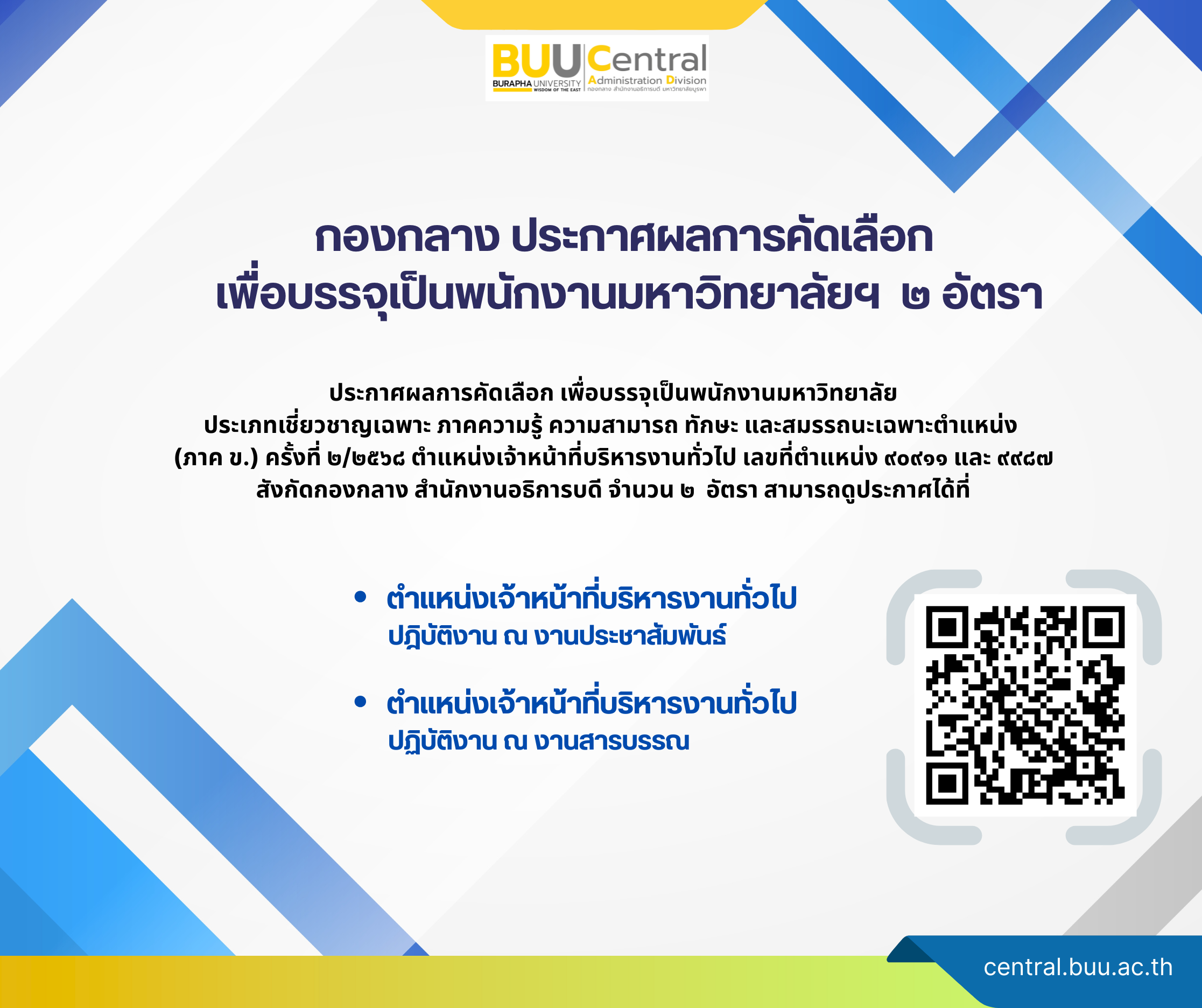 กองกลาง ประกาศผลการคัดเลือกเพื่อบรรจุเป็นพนักงานมหาวิทยาลัยฯ ๒ อัตรา