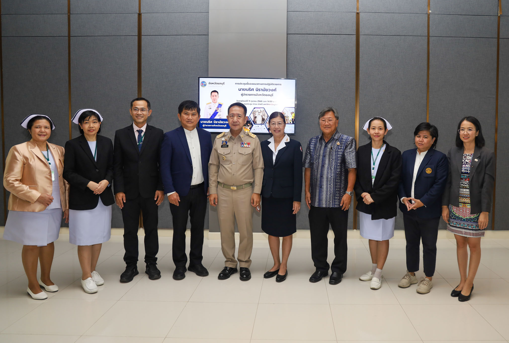 อธิการบดี มหาวิทยาลัยบูรพา พร้อมด้วย ประธานคณะกรรมการส่งเสริมกิจการมหาวิทยาลัยบูรพา ให้การต้อนรับ ผู้ว่าราชการจังหวัดชลบุรี และนายกเหล่ากาชาด จังหวัดชลบุรี
