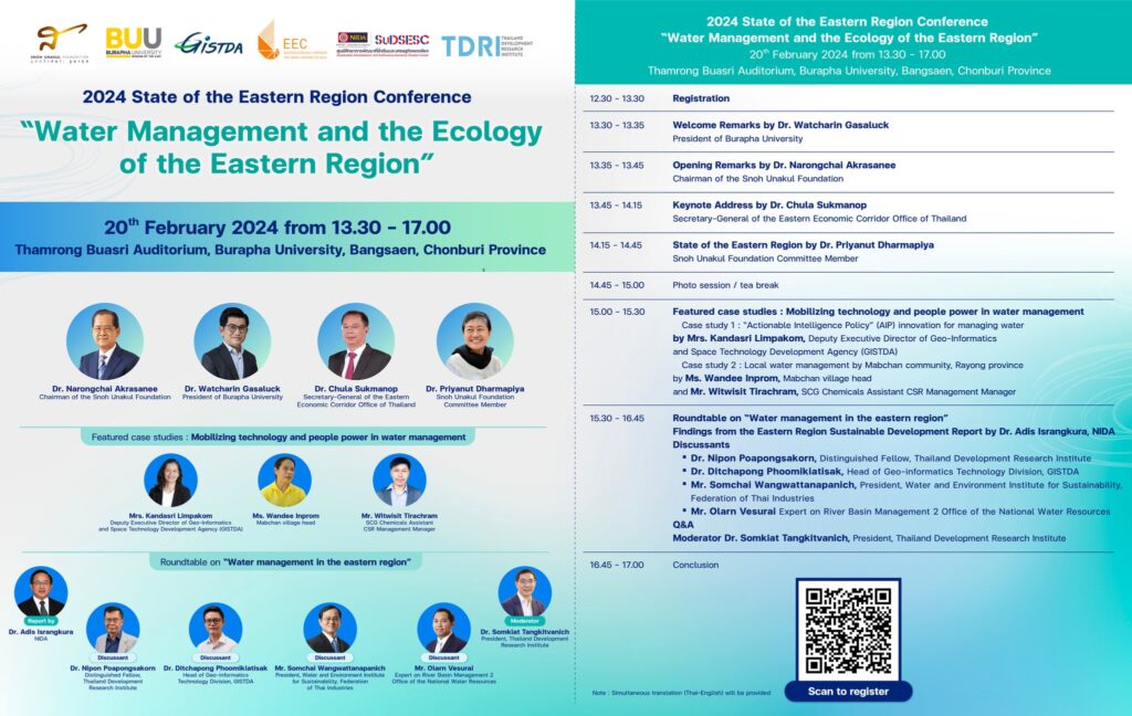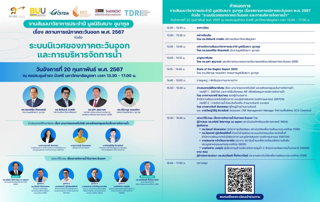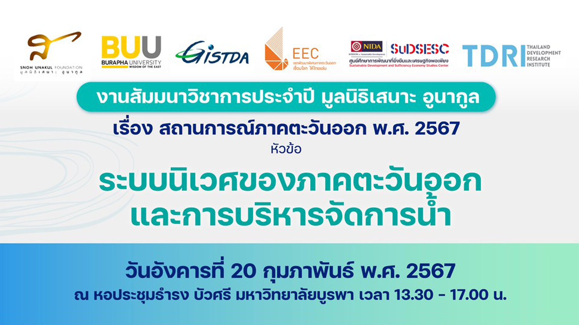 มูลนิธิเสนาะ อูนากูล มหาวิทยาลัยบูรพา สำนักงานคณะกรรมการนโยบายเขตพัฒนาพิเศษภาคตะวันออก (สกพอ.) หรือ อีอีซี และเครือข่ายพันธมิตร พร้อมเดินหน้าจัดสัมมนาวิชาการประจำปี เรื่อง #สถานการณ์ภาคตะวันออก พ.ศ. 2567 หัวข้อ “ระบบนิเวศของภาคตะวันออกและการบริหารจัดการน้ำ”