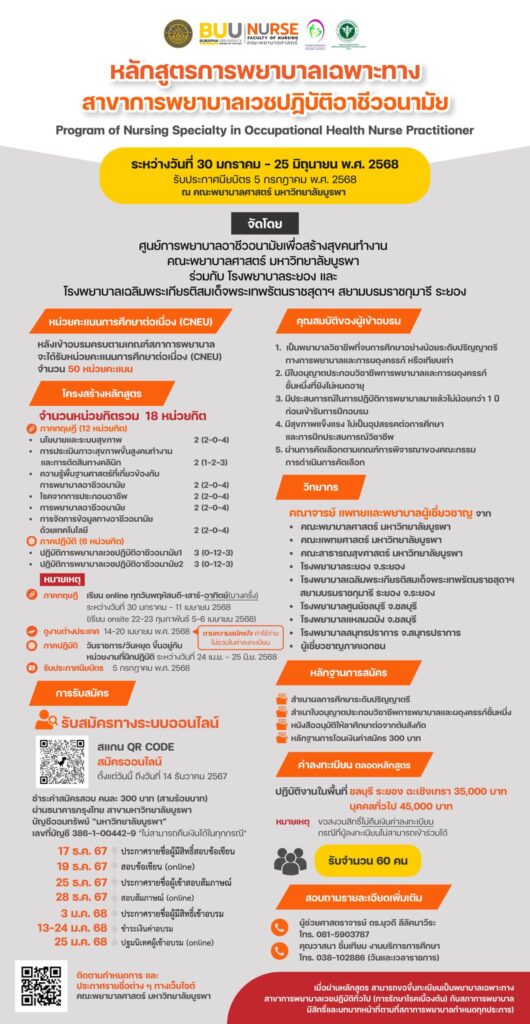 การอบรมหลักสูตรการพยาบาลเฉพาะทาง สาขาการพยาบาลเวชปฏิบัติอาชีวอนามัย (4 เดือน)