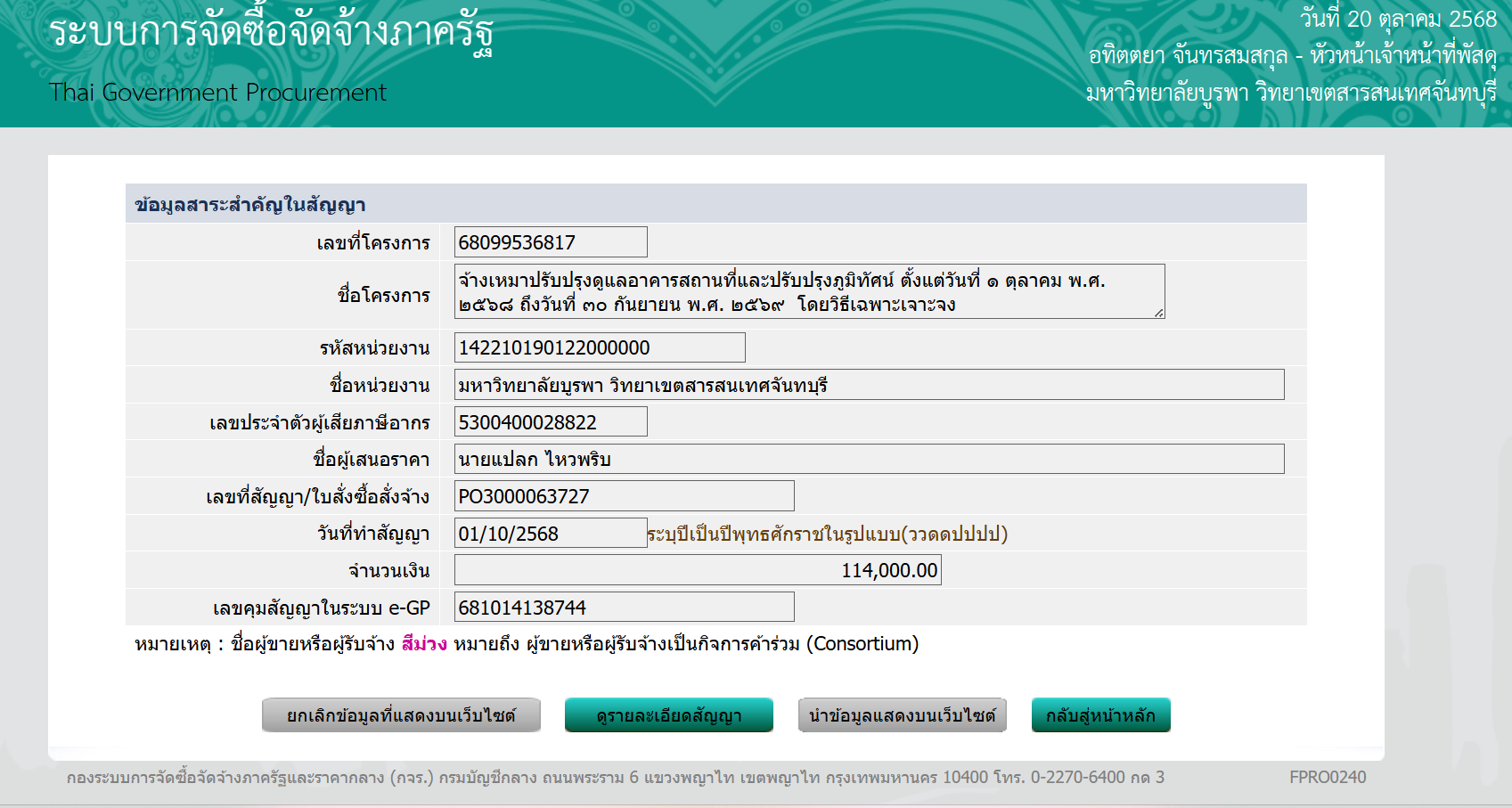 จ้างเหมาปรับปรุงดูแลอาคารสถานที่และปรับปรุงภูมิทัศน์ ตั้งแต่วันที่ ๑ ตุลาคม พ.ศ. ๒๕๖๘ ถึงวันที่ ๓๐ กันยายน พ.ศ. ๒๕๖๙ โดยวิธีเฉพาะเจาะจง