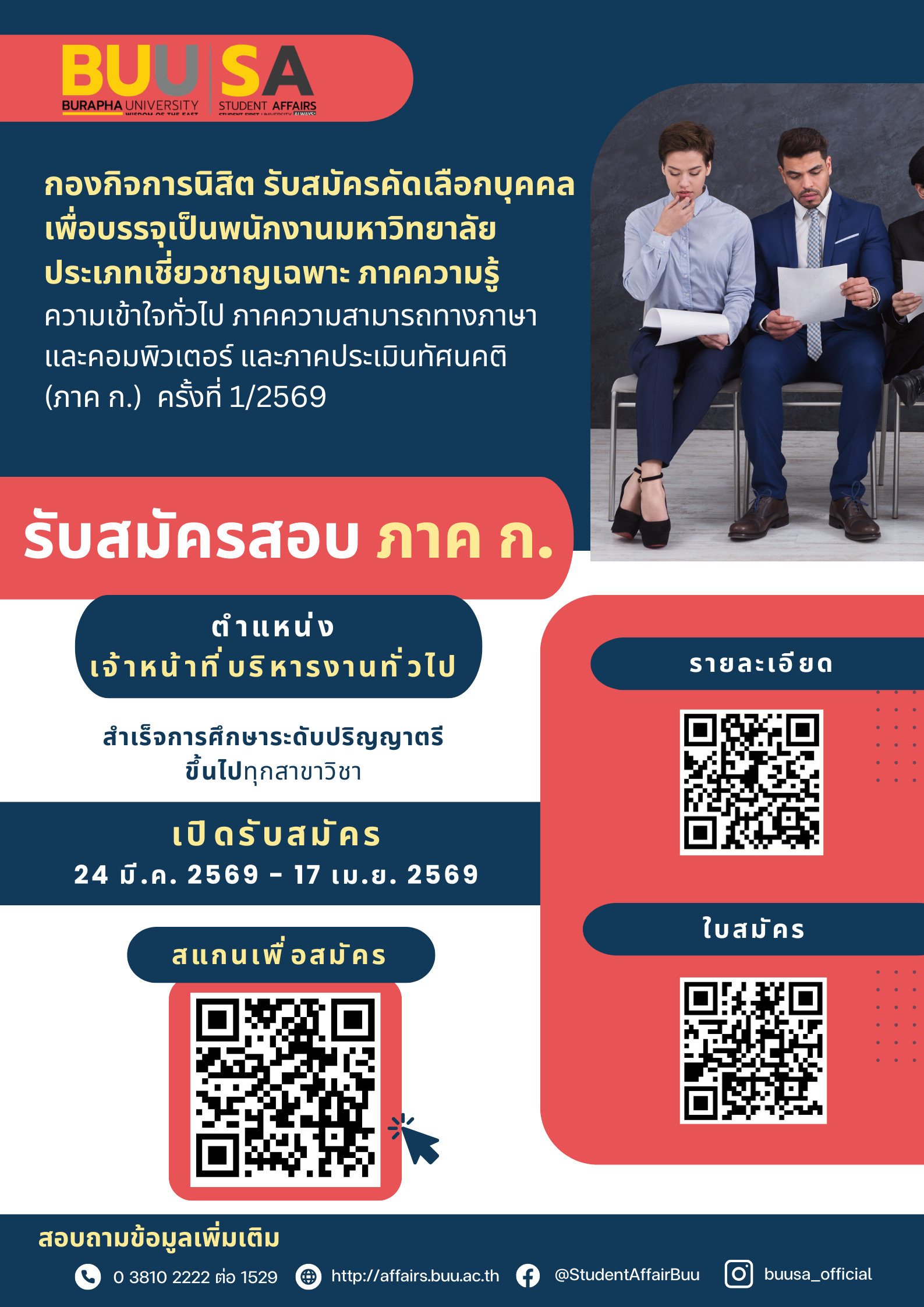สำหรับน้อง ๆ ที่สนใจที่จะสมัครเรียนในสาขานวัตกรรมเกษตร คณะเทคโนโลยีการเกษตร มหาวิทยาลัยบูรพาวิทยาเขตสระแก้ว สามารถสอบถามได้ที่ Facebook Fanpage คณะเทคโนโลยีการเกษตร มหาวิทยาลัยบูรพา วิทยาเขตสระแก้ว ได้เลยค่ะ