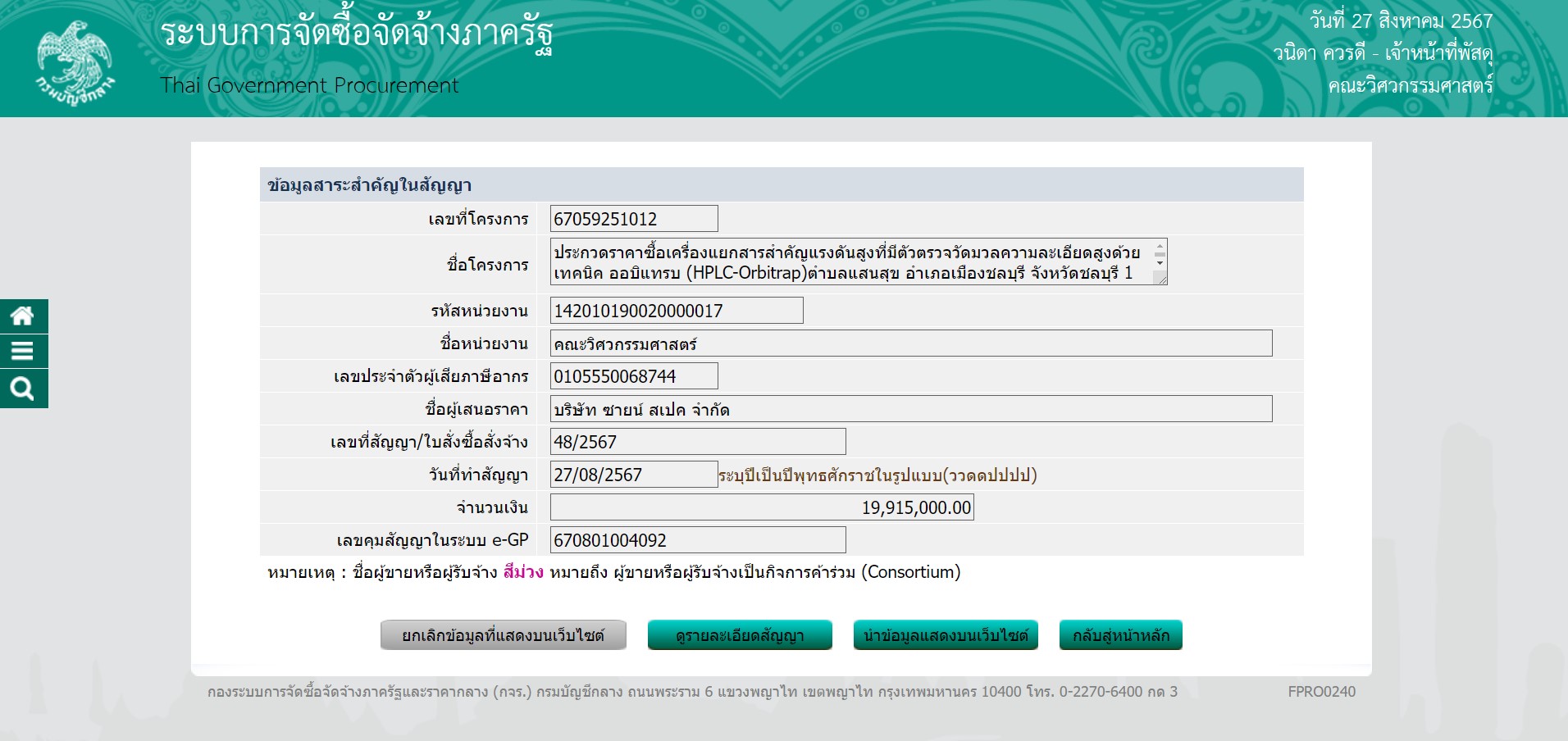 ประกาศข้อมูลสาระสำคัญในสัญญาเครื่องแยกสารสำคัญแรงดันสูงที่มีตัวตรวจวัดมวลความละเอียดสูง