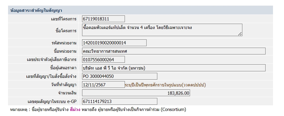 ประกาศข้อมูลสาระสำคัญในสัญญา งานซื้อแท๊ปเล็ต จำนวน 4 เครื่อง โดยวิธีเฉพาะเจาะจง