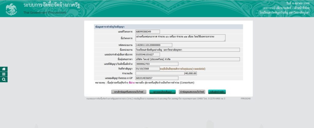 ประกาศข้อมูลสาระสำคัญในสัญญา เช่าเครื่องฟอกอากาศ จำนวน ๔๐ เครื่อง ระยะเวลา ๑๒ เดือน โดยวิธีเฉพาะเจาะจง