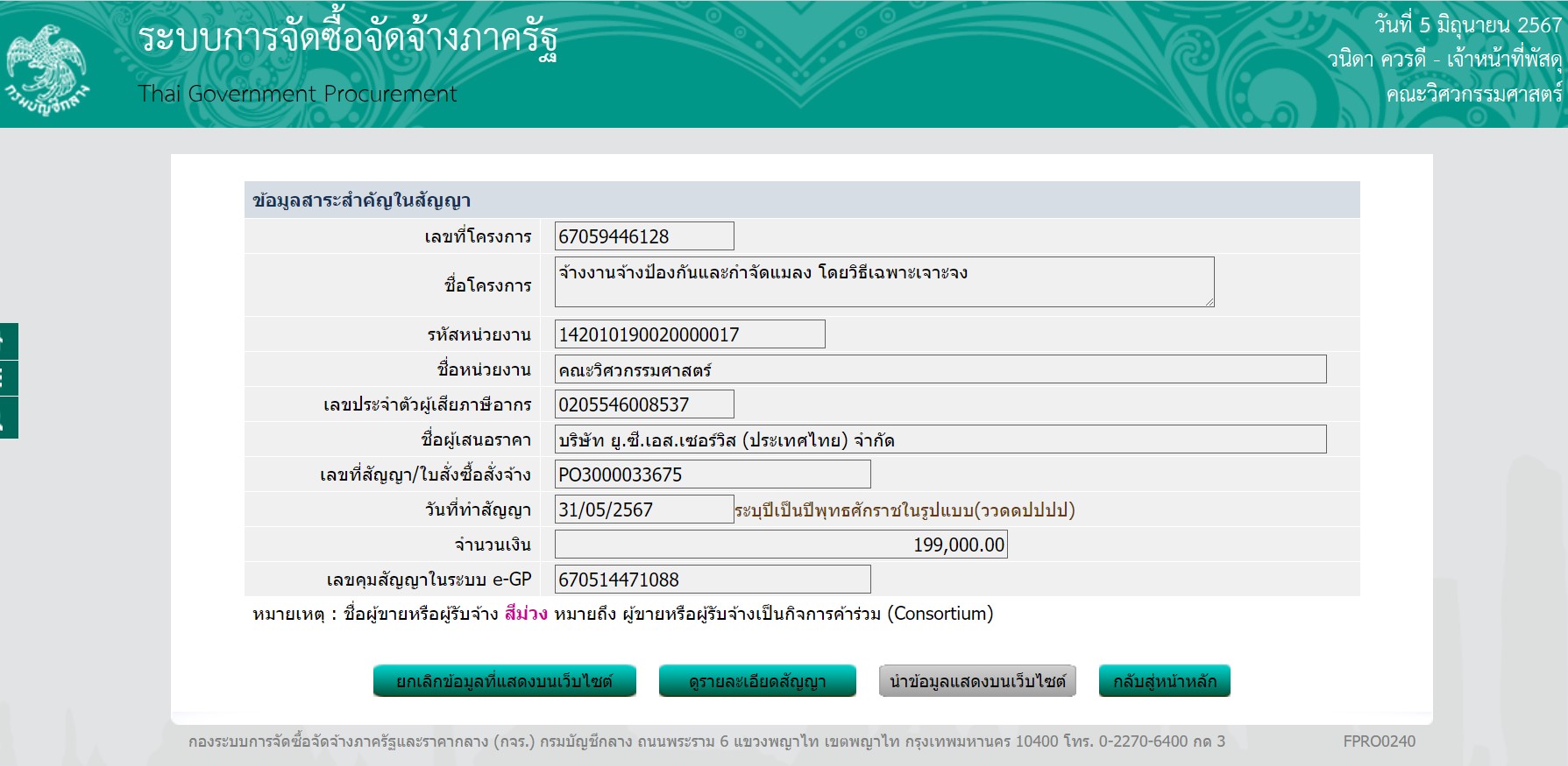 ประกาศข้อมูลสาระสำคัญในสัญญาจ้างงานจ้างป้องกันและกำจัดแมลง