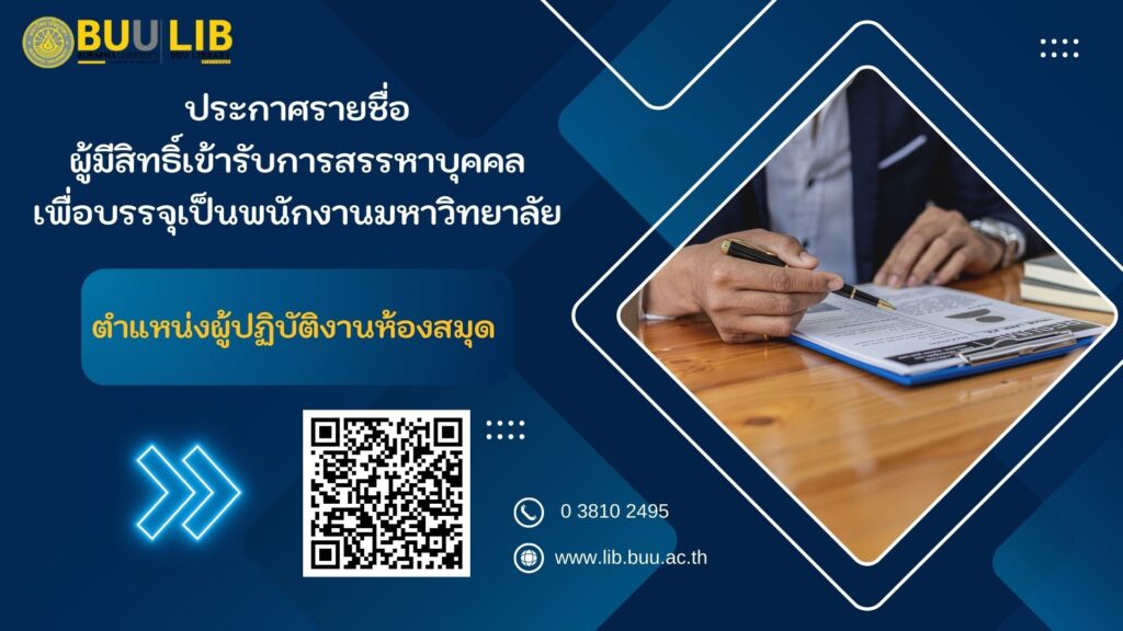 ประกาศรายชื่อผู้มีสิทธิ์เข้ารับการสรรหาบุคคลเพื่อบรรจุเป็นพนักงานมหาวิทยาลัย ตำแหน่งผู้ปฏิบัติงานห้องสมุด