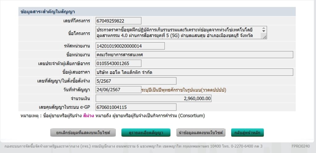 ข้อมูลสาระสำคัญในสัญญางานจัดซื้อสารเคมี 86 รายการ สำหรั […]