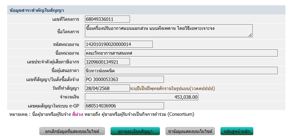 ประกาศสาระสำคัญในสัญญา งานซื้อเครื่องปรับอากาศ 4 เครื่อง
