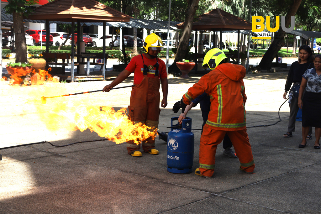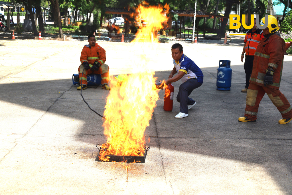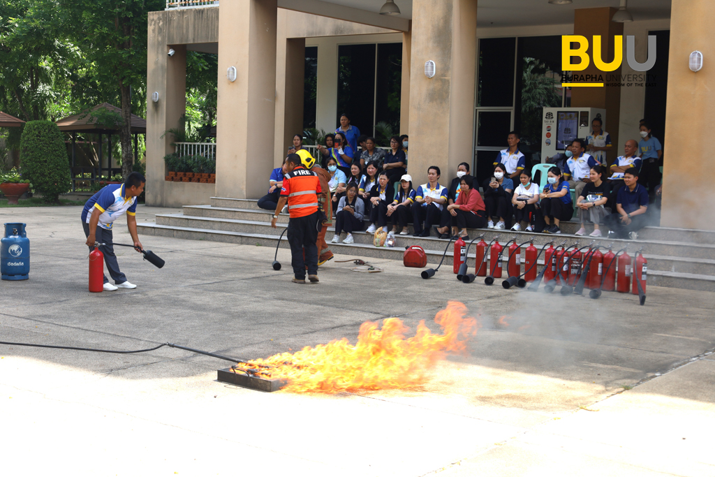 ม.บูรพา…อบรมบุคลากร..”ซ้อมดับเพลิงและอพยพหนีไฟ” ในโครงการฝึกอบรมการดับเพลิงเบื้องต้นและฝึกซ้อมอพยพหนีไฟ