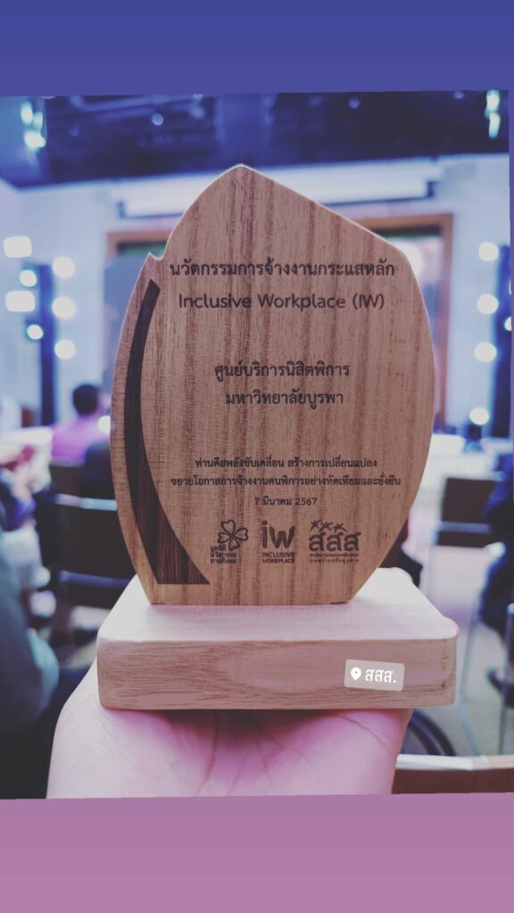 ศูนย์บริการนิสิตพิการ (DSS) มหาวิทยาลัยบูรพา รับโล่เกียรติคุณ จาก ‘สสส.- มูลนิธินวัตกรรมทางสังคม’
