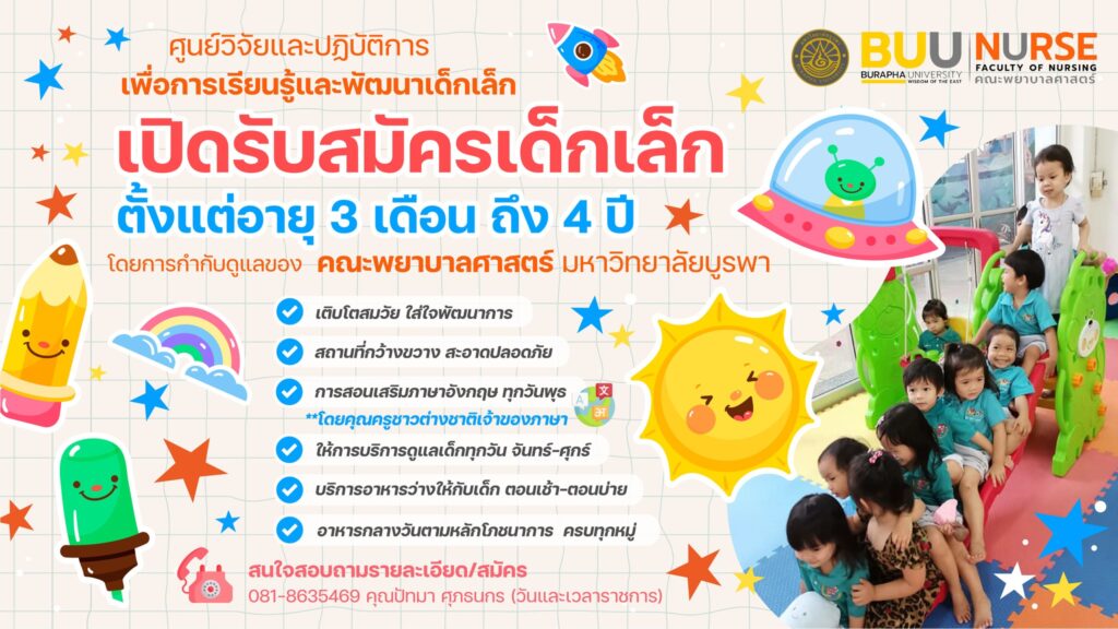 ศูนย์วิจัยและปฏิบัติการเพื่อการเรียนรู้และพัฒนาเด็กเล็ก คณะพยาบาลศาสตร์ เปิดรับสมัครเด็กเล็กตั้งแต่อายุ 3 เดือน ถึง 4 ปี