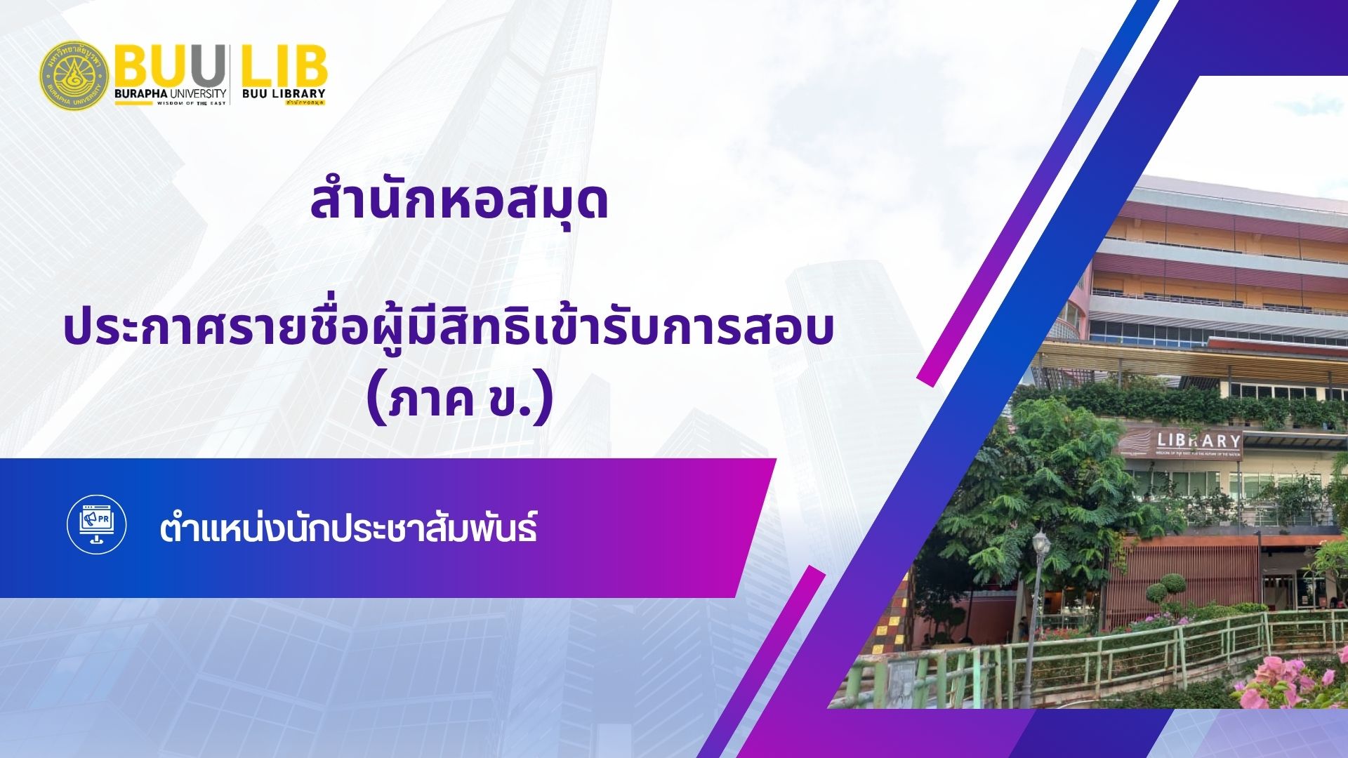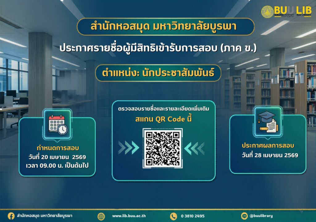 สำนักหอสมุด ประกาศรายชื่อผู้มีสิทธิเข้ารับการสอบคัดเลือกบุคคลเพื่อบรรจุเป็นพนักงานมหาวิทยาลัย (ภาค ข.)