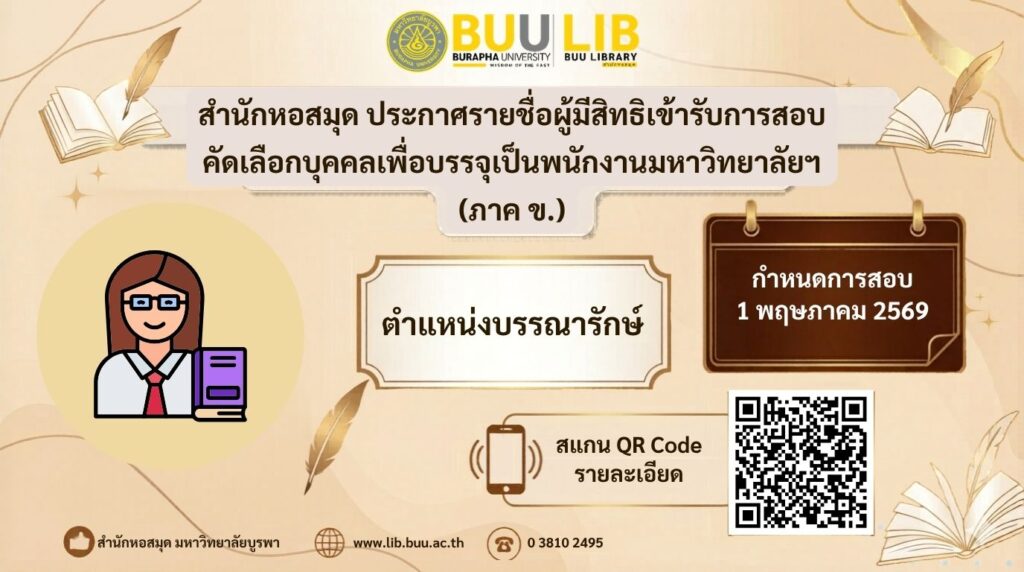สำนักหอสมุด ประกาศรายชื่อผู้มีสิทธิเข้ารับการสอบคัดเลือกบุคคลเพื่อบรรจุเป็นพนักงานมหาวิทยาลัย (ภาค ข.) ตำแหน่งบรรณารักษ์
