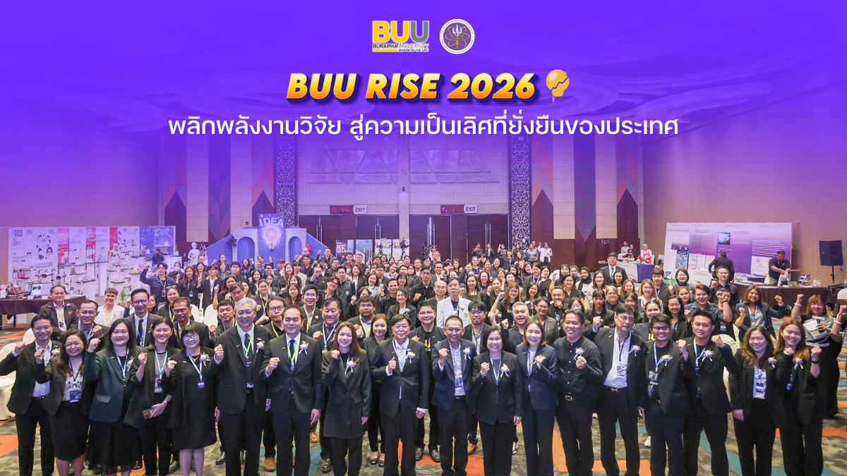 วันที่ 11 ก.พ. 2569 กองบริหารการวิจัยและนวัตกรรม มหาวิทยาลัยบูรพา จัดงาน BUU RISE 2026: Research and Innovation for Sustainable Excellence, Burapha University อย่างเป็นทางการ ภายใต้แนวคิด “วิจัยเพื่ออนาคต สร้างผลกระทบอย่างยั่งยืน (Innovating the Future : Research with Impact)” ณ โรงแรมบางแสน เฮอริเทจ จังหวัดชลบุรี ท่ามกลางผู้บริหาร คณาจารย์ นักวิจัย และเครือข่ายพันธมิตรจากหลากหลายภาคส่วนเข้าร่วมงานอย่างคับคั่ง