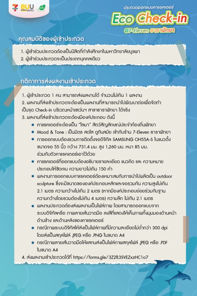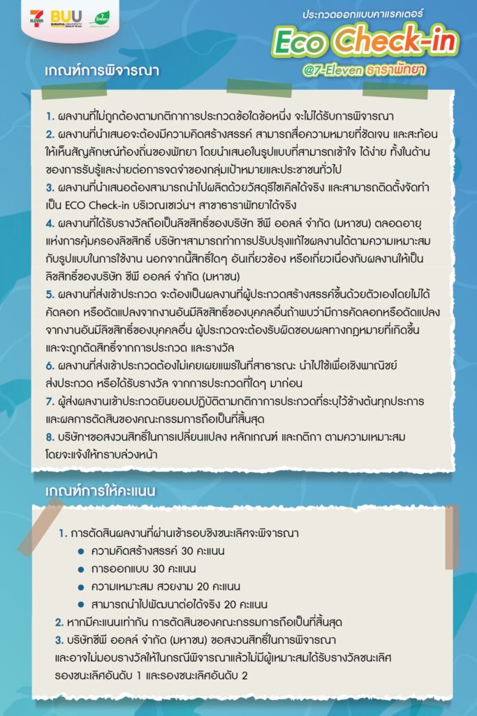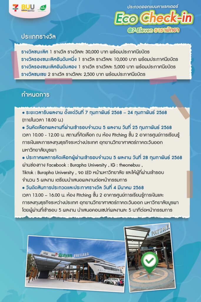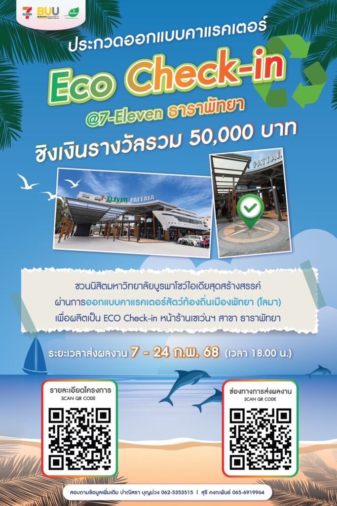 เชิญชวนนิสิต ม.บูรพาโชว์ไอเดียสุดสร้างสรรค์เพื่อผลิตเป็น Eco Check-in หน้าร้าน 7-Eleven สาขาธาราพัทยา ชิงเงินรางวัลรวม 50,000 บาท