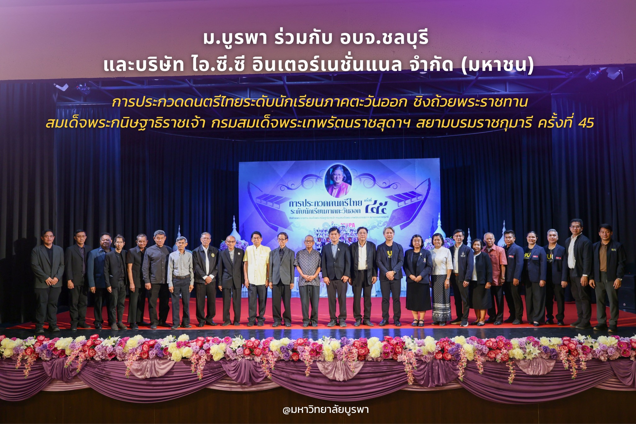 ม.บูรพา ร่วมกับ อบจ.ชลบุรี และบริษัท ไอ.ซี.ซี อินเตอร์เนชั่นแนล จำกัด (มหาชน) จัดประกวดดนตรีไทยระดับนักเรียนภาคตะวันออก ชิงถ้วยพระราชทานสมเด็จพระกนิษฐาธิราชเจ้าฯ ครั้งที่ 45