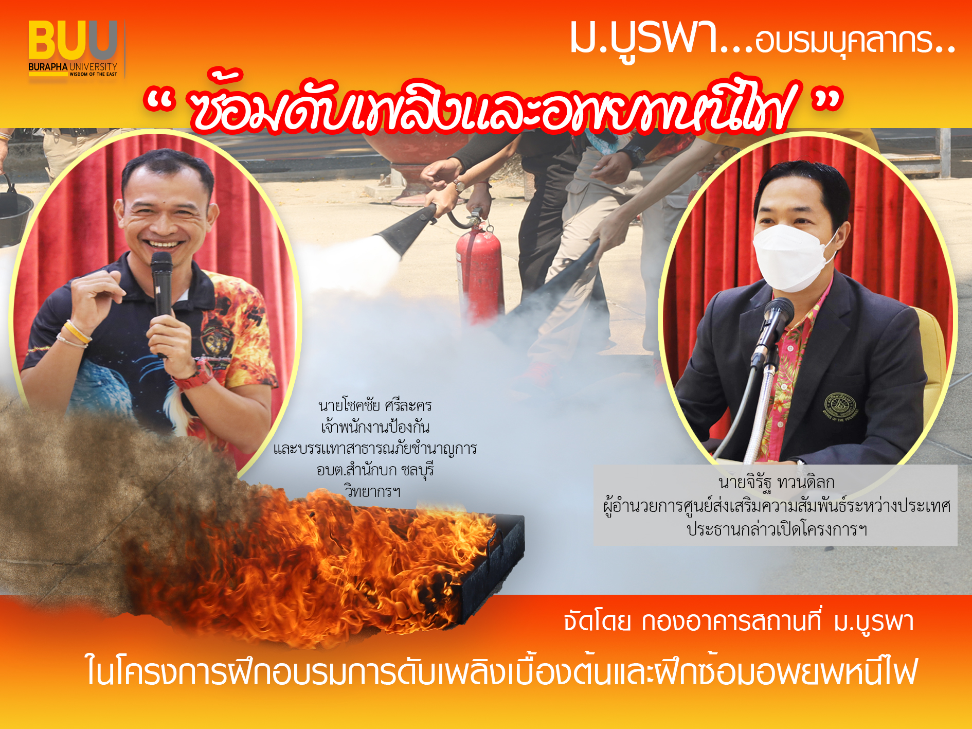 ม.บูรพา อบรมบุคลากร ซ้อมดับเพลิงและอพยพหนีไฟ