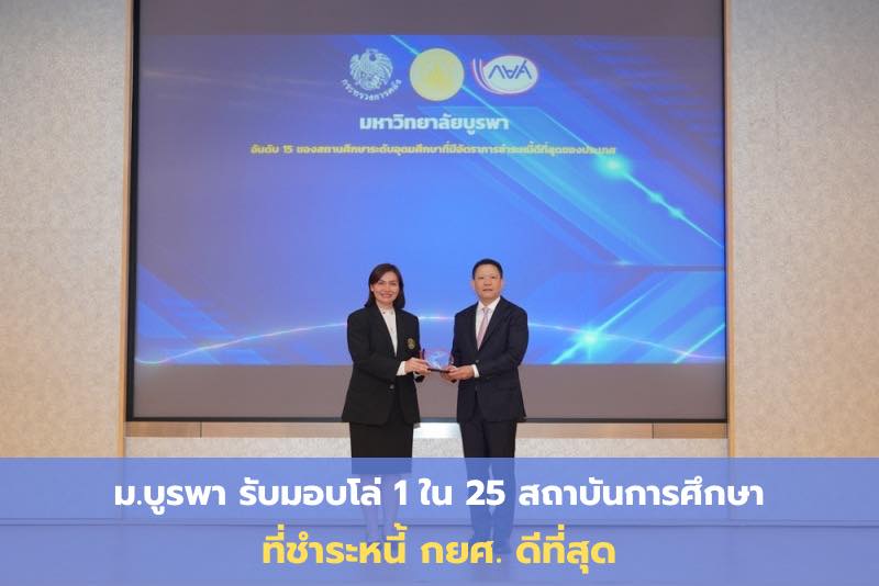 ม.บูรพา รับรางวัลสถานศึกษาระดับอุดมศึกษาที่มีอัตราชำระหนี้ดีที่สุด 25 อันดับแรกของประเทศ