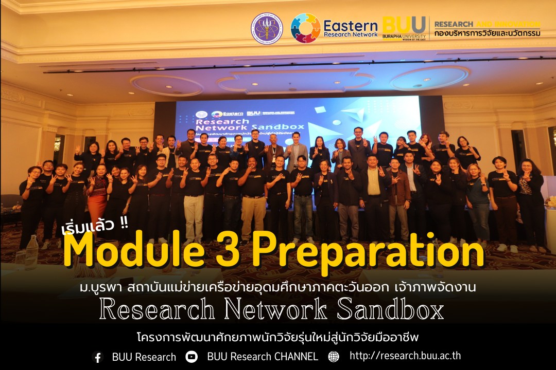 Module 3 Preparation ม.บูรพา สถาบันแม่ข่ายเครือข่ายอุดมศึกษาภาคตะวันออก เจ้าภาพจัดงาน “Research Network Sandbox” โครงการพัฒนาศักยภาพนักวิจัยรุ่นใหม่สู่นักวิจัยมืออาชีพ