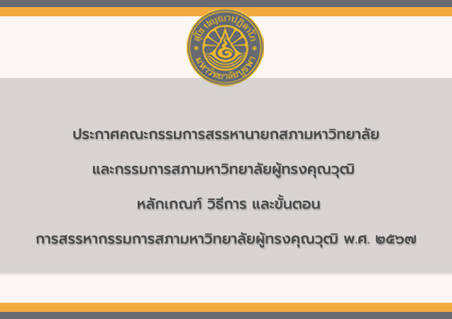ประกาศคณะกรรมการสรรหานายกสภามหาวิทยาลัยและกรรมการสภามหาวิทยาลัยผู้ทรงคุณวุฒิ ฉบับที่ ๑/๒๕๖๗ เรื่อง หลักเกณฑ์ วิธีการ และขั้นตอนการสรรหากรรมการสภามหาวิทยาลัยผู้ทรงคุณวุฒิ พ.ศ. ๒๕๖๗